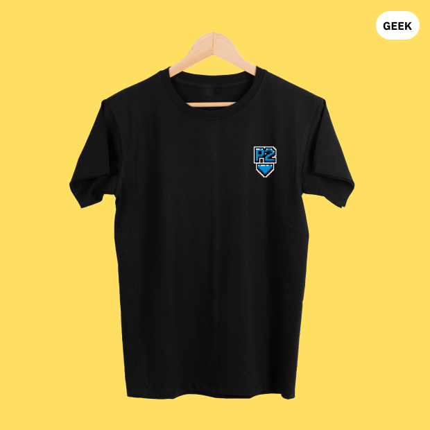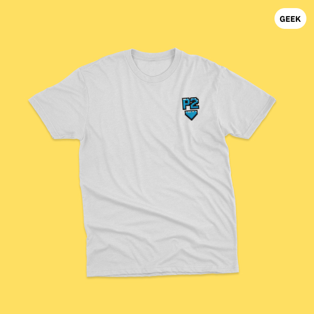• Design Retrô: A arte em pixel "P2" celebra o espírito dos games clássicos, tornando esta camiseta um item essencial para qualquer gamer.